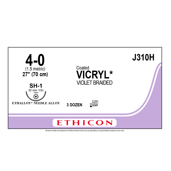 SUTURA VICRYL 4-0, AHUSADA, POLIGLACTINA 910 VIOLETA TRENZADO ABSORBIBLE, GENERAL, SH-1, 70CM, ETHICON / J&J.