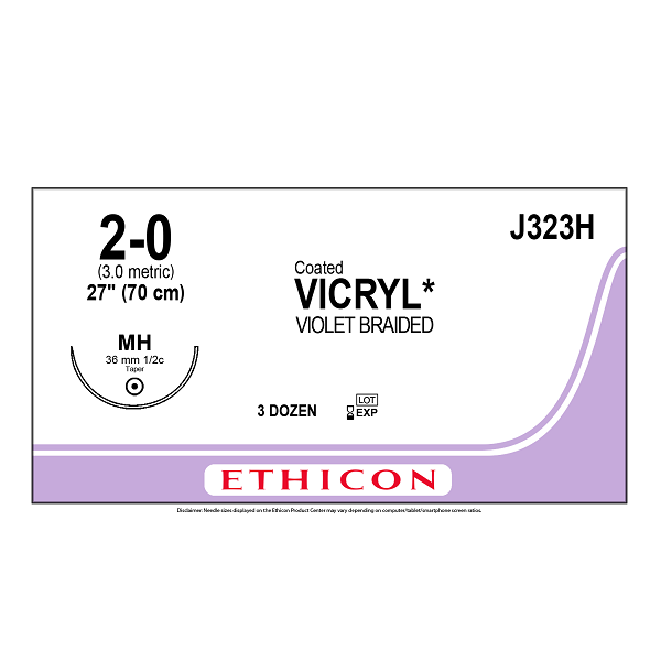 SUTURA VICRYL 2-0, AHUSADA, POLIGLACTINA 910 VIOLETA TRENZADO ABSORBIBLE, GASTROINTESTINAL, MH, 70CM, ETHICON / J&J.
