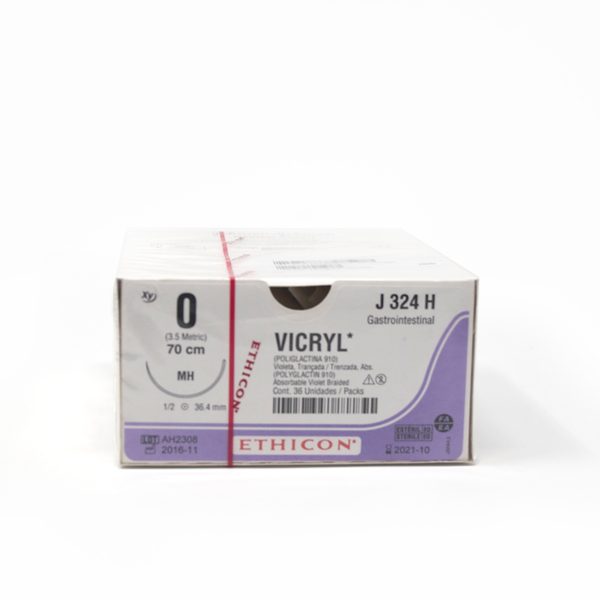 SUTURA VICRYL 0, AHUSADA, POLIGLACTINA 910 VIOLETA TRENZADO ABSORBIBLE, GASTROINTESTINAL, MH, 70CM, ETHICON / J&J.