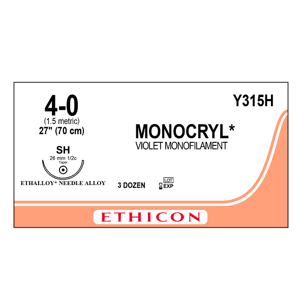 SUTURA MONOCRYL 4-0, MONOFILAMENTO VIOLETA, NO ABSORBIBLE, AHUSADA, SH, 70CM, ETHICON / J&J.